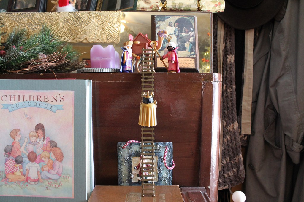While we never actually did this in my home as a child, for a little over a decade, I have been doing this in my own home with my children—but with my own special touch. Over the years I have photographed and posted—with dialogue—a daily account of what the wisemen have encountered in my front room as they endeavor to reach Mary and Joseph on the 24th of December.