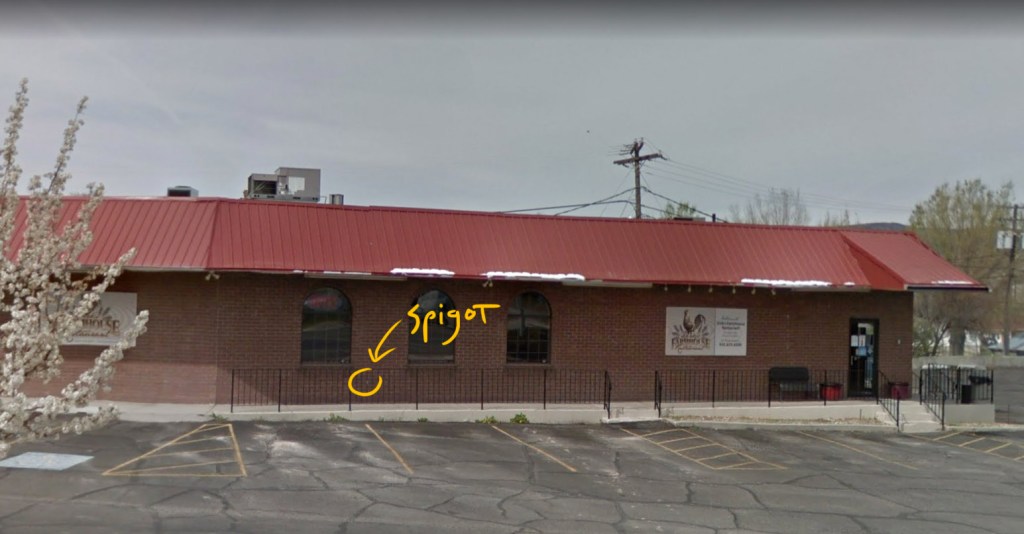 With temperatures low and no sign of change, Erich and I had an mischevious idea. And it started with seeing a single spigot placed slightly out of the way on the porch of a business located on Main Street.