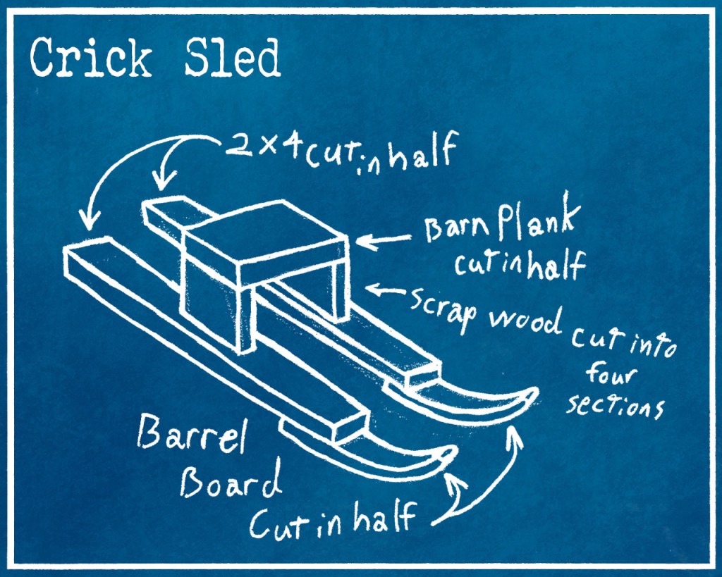 The design was simple, effective, and pure genius. It was like something out of one of those cheesy teen-boy 1980’s stories (like The Mad Scientists’ Club by Bertrand R. Brinley—I loved those books, they inspired me). Measurements were dictated by what we had. By that I mean, we had two 2×4’s and we needed four skis. So, each board was carefully measured. And then cut in half. That’s how long each ski was. The seats were done the same. Erich had a spare plank that had fallen off the roof of the dilapidated barn in his backyard. That too was carefully measured. And then cut in half—after the rot had been trimmed off the ends. That’s how wide each seat was. Also, the seats were as deep as the board had been wide. Next, we needed supports for the seats. This took some thought.