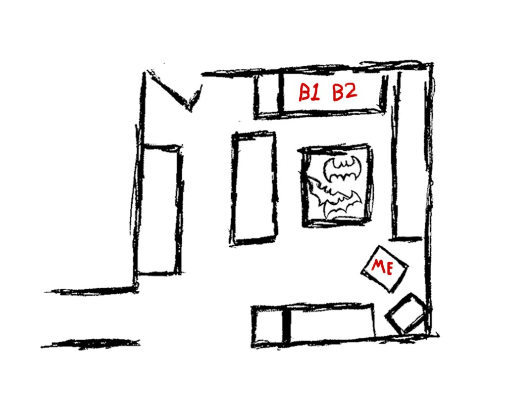 We continued to discuss what the plans were for the evening, while I sharpened and polished my batarangs. Everything was going according to plan. They had never looked about the room. Their attention had been on me, the sword, and the display of weapons set all about the coffee table.