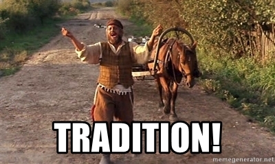 If, when seeing, hearing, or reading the word ‘tradition’ you don’t hear the cast from the 1971 musical, Fiddler on the Roof, burst into song in your head (or even you sing the word out loud) then maybe you don’t have a soul. That movie is the best! And that song… That song has only one thing in common with this week’s post: Tradition!