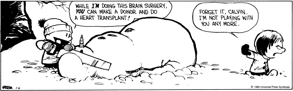 If you’ve ever read Calvin and Hobbes, by Bill Waterson, you’ve probably seen the snowmen. Some are monsters, but, many suffer tragic fates. Being very much like Calvin—as well as a huge fan of the comic—I, one day, tried something new.