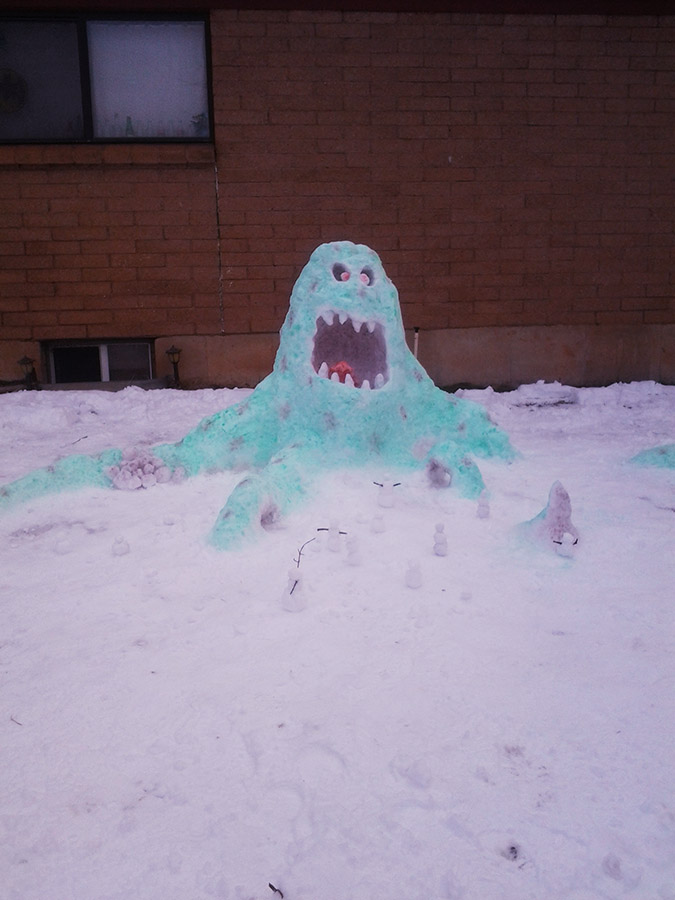 There was a knock at the door. It was Jaron’s mom. She had recently come home and had opened up the back door of her place—which faced our front door—when the snowman had exploded. All she had time to process was three snowmen, an explosion, two snowmen intact, one snowman almost blown to smithereens, then self-assess any damage done to her. Once, she had realized she was alright, she came to get her son.