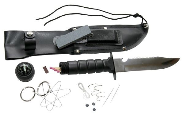 Rambo—back in the ‘80s—taught many a lesson. One of which was: Have a cool survival knife. The scene where he sews himself up from a kit he got out of his knife handle changed the outdoors for every kid. The standard ‘Rambo’ knife had a black plastic handle, a long blade with a serrated ‘saw’ side, a handle full of matches and fishing hooks and line, and a compass on the end. It also had a sharpening stone—in its own sheath on the main sheath (extra cool). I had one.