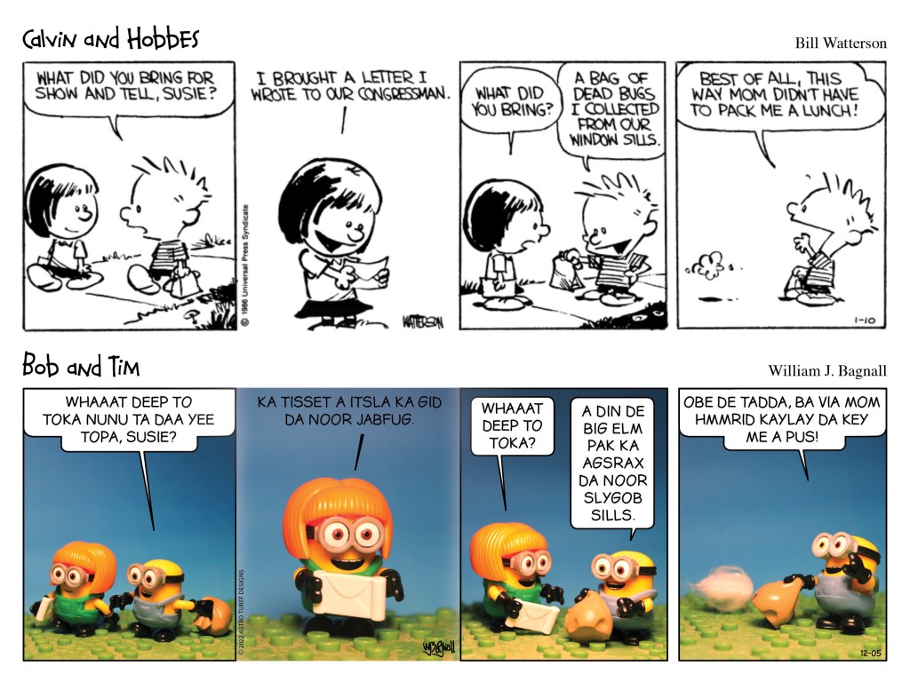 I started this project years ago. I’ve spent a lot of time collecting bits and bobs to combine Bill Watterson’s Calvin & Hobbes universe with a touch of the minion world. It was meant to be just a personal project, but I have decided to share it. Mostly because it will force me to finally complete more of them. And so, here is another Bob & Tim.
