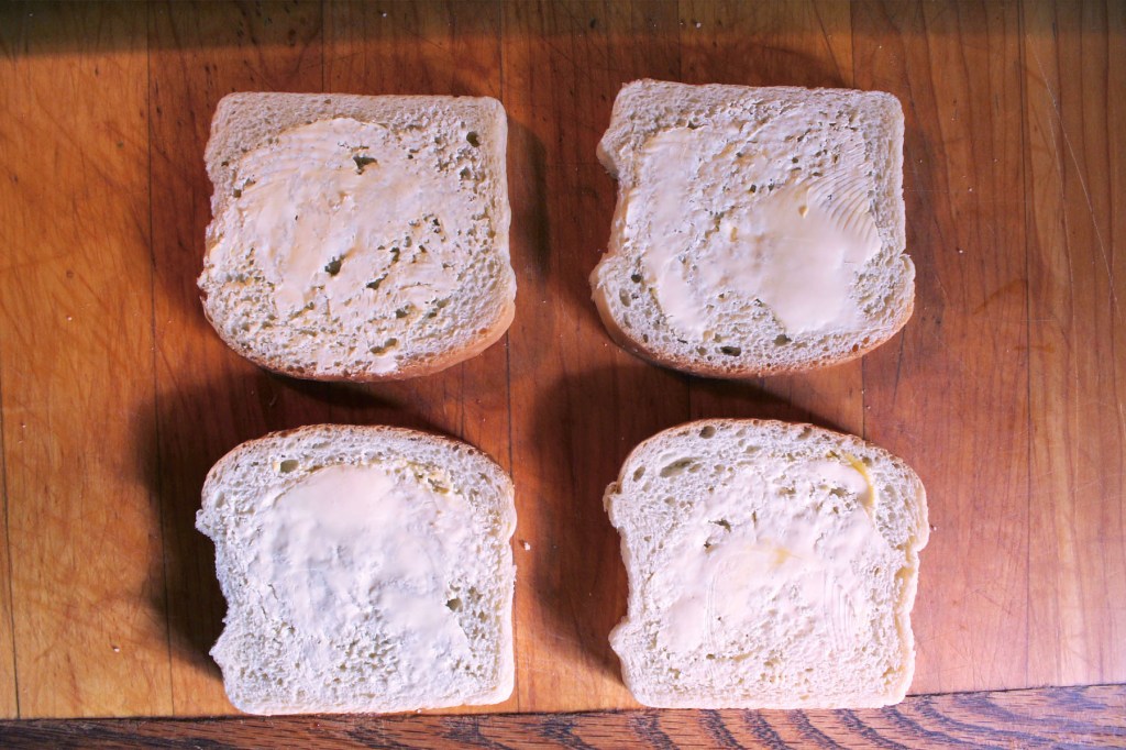 First, butter the outsides of your bread slices. Easy.