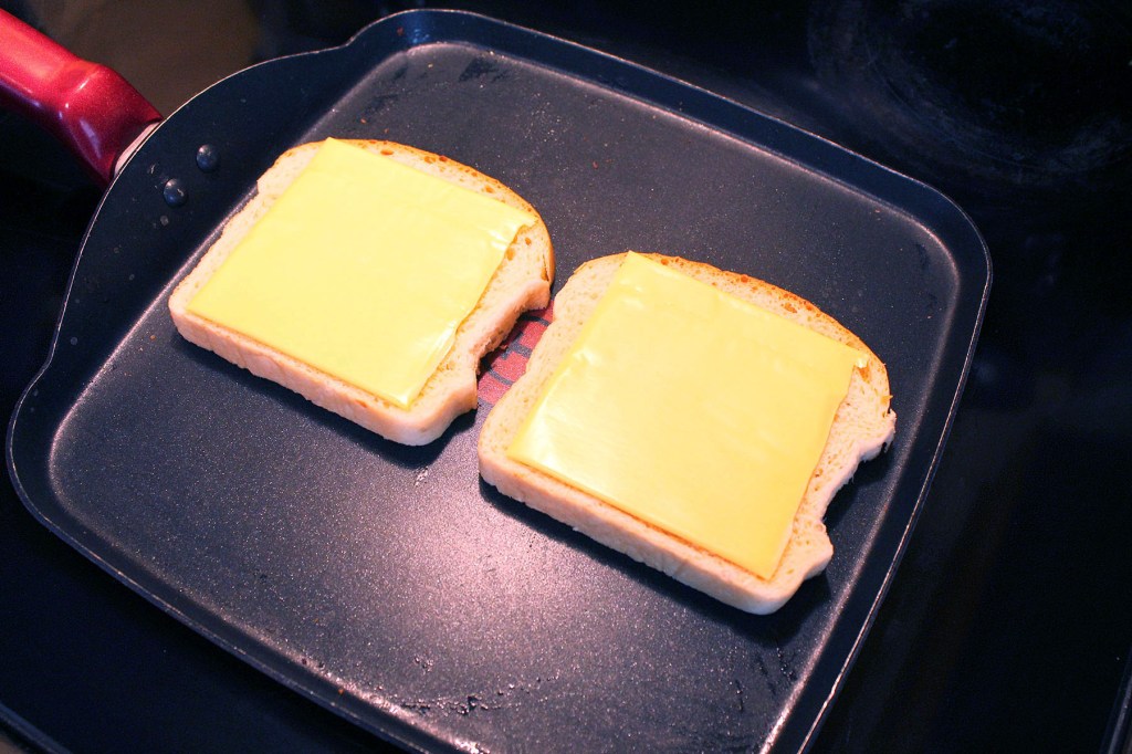 The components are simple: Bread, butter, cheese, and time to cook it.