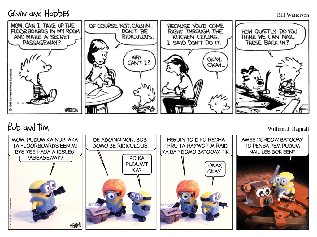 I started this project years ago. I’ve spent a lot of time collecting bits and bobs to combine Bill Watterson’s Calvin & Hobbes universe with a touch of the minion world. It was meant to be just a personal project, but I have decided to share it. Mostly because it will force me to finally complete more of them. And so, here is another Bob & Tim.