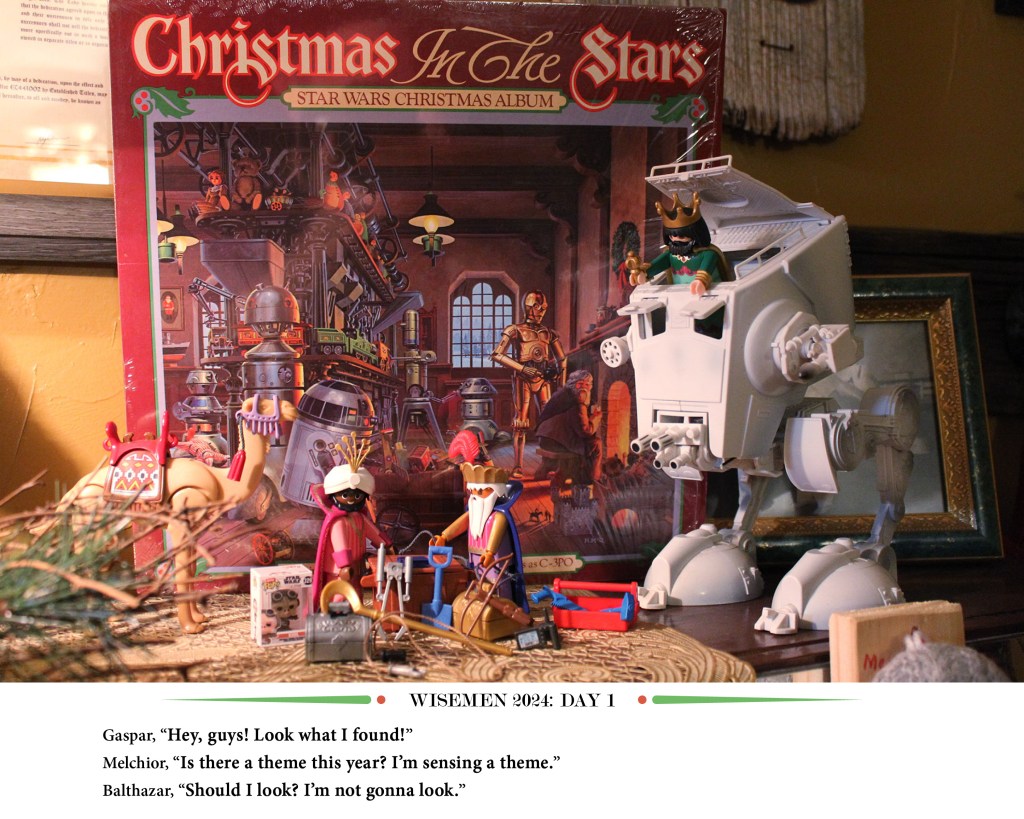 While we never actually did this in my home as a child, for a little over a decade, I have been doing this in my own home with my children—but with my own special touch. Over the years I have photographed and posted—with dialogue—a daily account of what the wisemen have encountered in my front room as they endeavor to reach Mary and Joseph on the 24th of December.