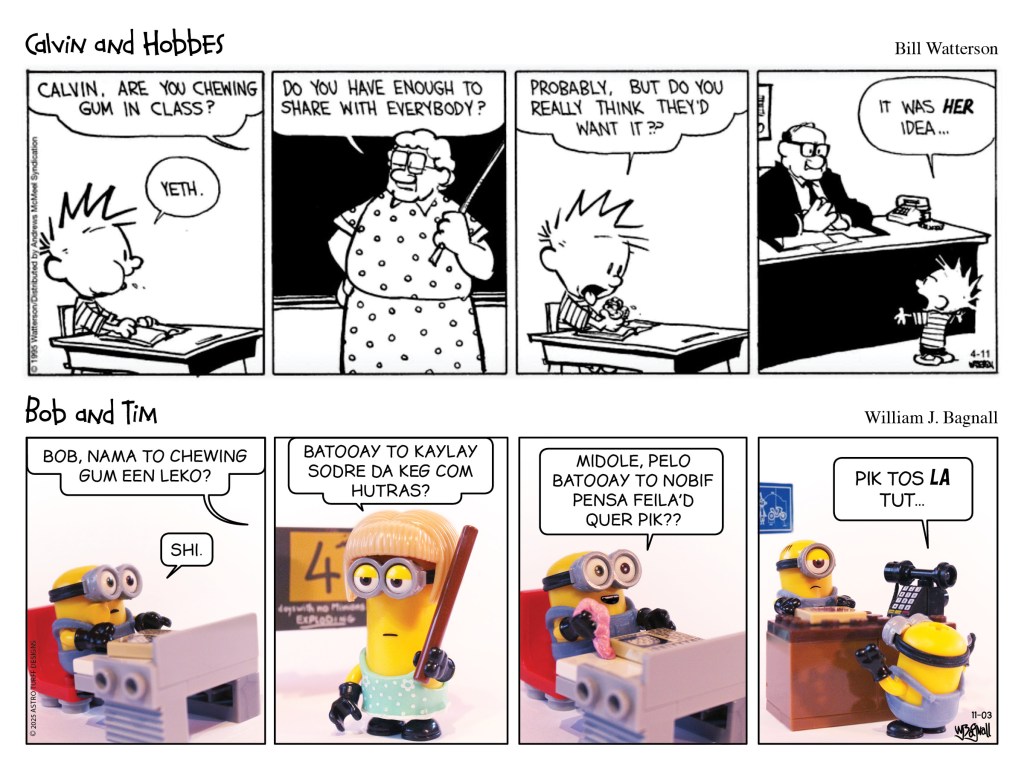 I started this project years ago. I’ve spent a lot of time collecting bits and bobs to combine Bill Watterson’s Calvin & Hobbes universe with a touch of the minion world. It was meant to be just a personal project, but I have decided to share it. Mostly because it will force me to finally complete more of them. And so, here is another Bob & Tim.